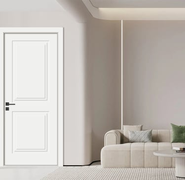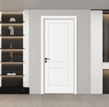This two-panel lacquered door features a harmonious upper–lower structure, highlighted by elegant double-line detailing that adds depth and sophistication. The clean geometry enhances spatial rhythm, making the design suitable for both contemporary and classic interior styles.
