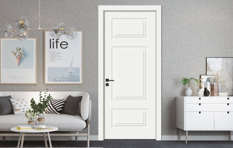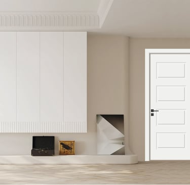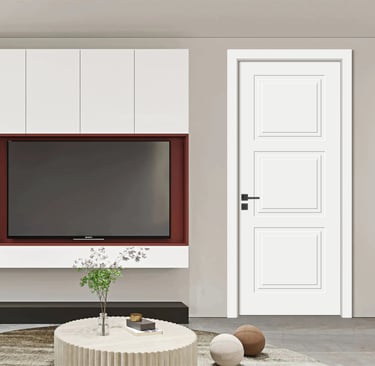 The Three-Panel Lacquered Door embodies balance and structure, featuring precisely aligned panels with subtle double-line moulding for sophisticated depth. Its symmetrical layout brings an architectural calm to interiors that value order and refined aesthetics.