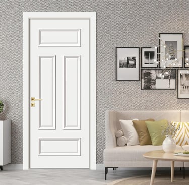 This door reinterprets proportion with a distinctive layout: two equal upper and lower panels frame an elongated central panel, creating rhythm within structure. Double-line moulding accentuates each section, adding architectural refinement.