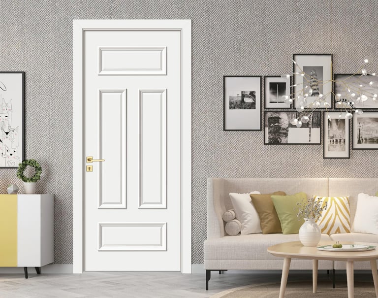 Crafted with premium PVC foil finish, the surface offers excellent resistance to scratches, water, stains, and daily wear. It remains stable over time—easy to clean, colorfast, and ideal for both residential and commercial environments. The refined texture emulates the look of lacquered surfaces and is available in both glossy and matte options, enhancing light and shadow interaction across the door.