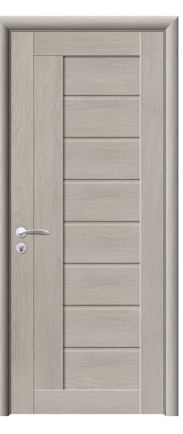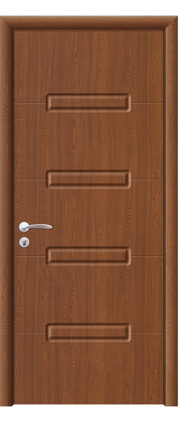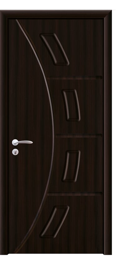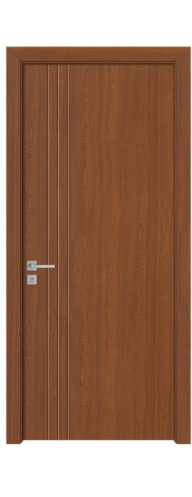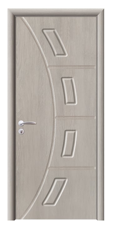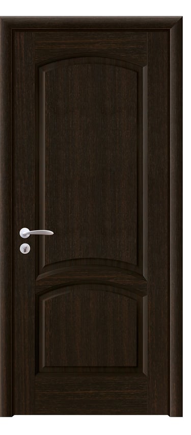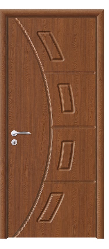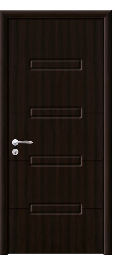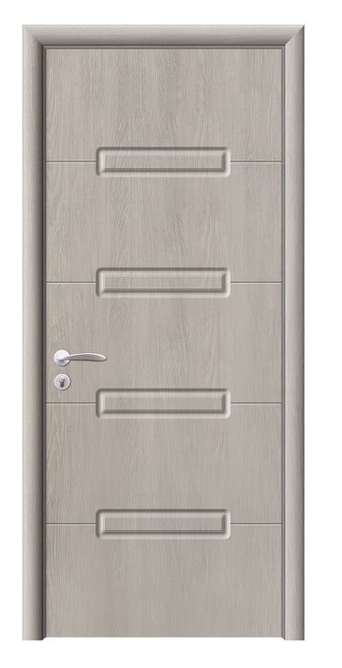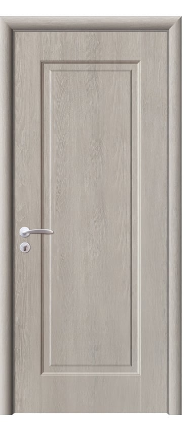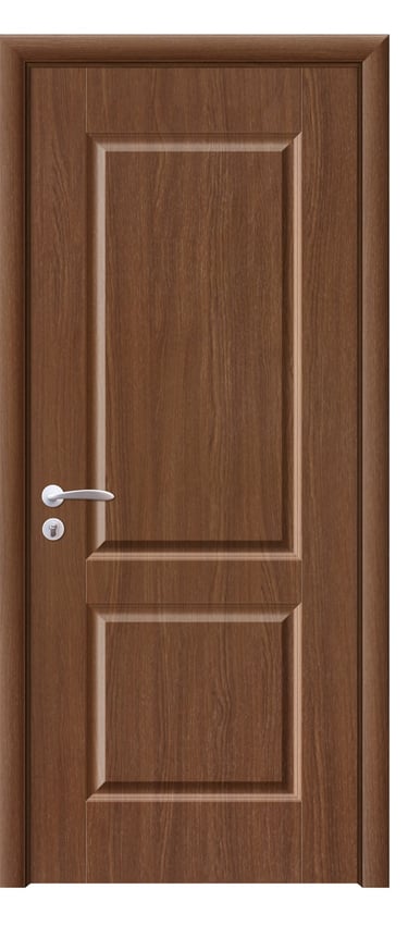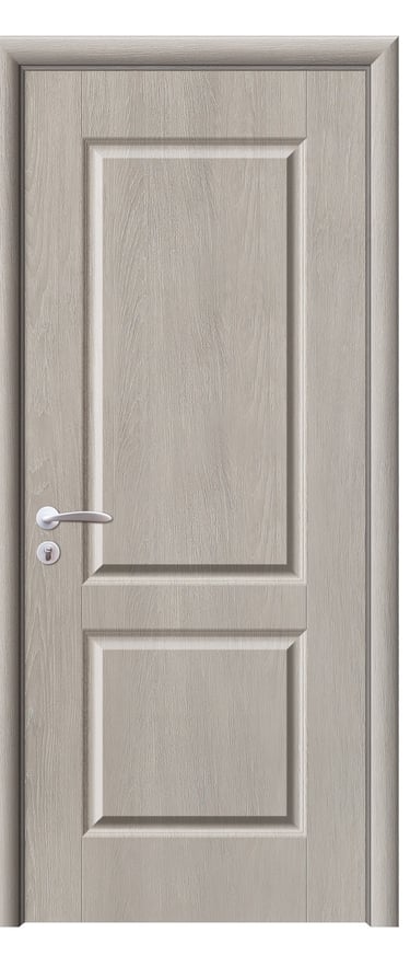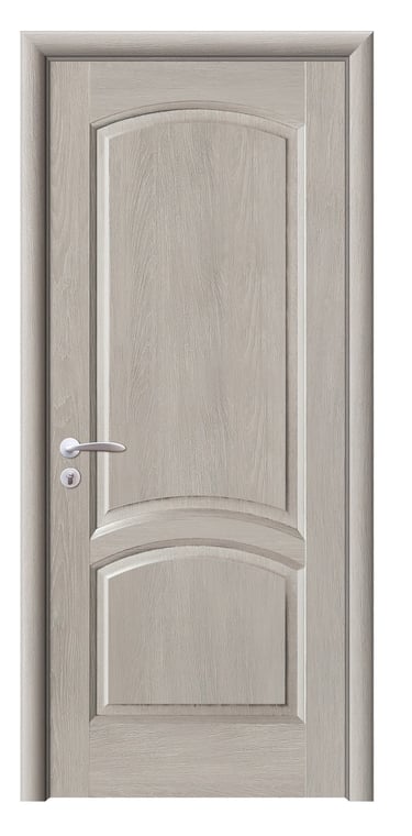 This molded PVC door features a deep, dual-panel design that conveys calm elegance and architectural clarity. The upper and lower rectangular panels are proportioned with precision, offering clean lines and subtle depth that respond beautifully to light and shadow. The PVC foil finish delivers a refined texture with moisture resistance, scratch protection, and easy maintenance—ideal for bedrooms, studies, hallways, and office interiors. Available in a selection of finishes: Grey Oak for modern restraint, Golden Teak for natural warmth, Black Rose for noble mystery, and Pure White for luminous simplicity. Custom colors and hardware options are also available to match diverse interior schemes. This model balances sculptural form with practical durability, making it a versatile choice for both contemporary minimalism and timeless elegance.